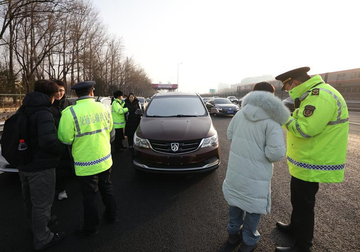 早上八点半,一辆悬挂河北临时号牌的非法营运车辆被现场拦停,陆续从车上下来多名乘客。