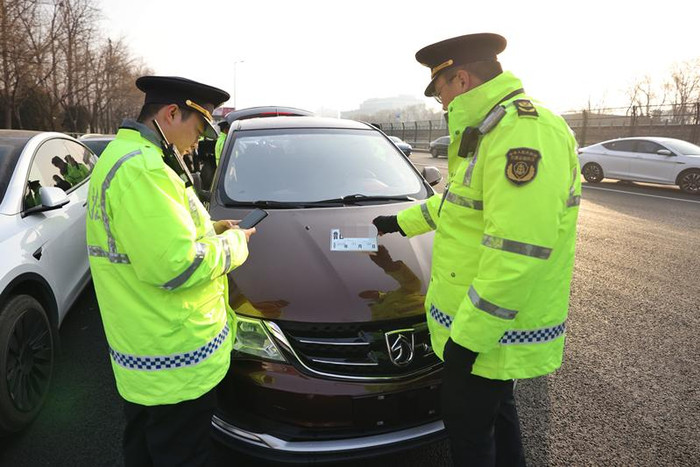 今天(1月15日)早高峰时段,市交管部门和交通执法总队联合在京通快速路进京方向,对违法运营的“黑车”开展执法检查。在京通快速路进京方向双桥路段,多辆悬挂临时号牌、存在交通违法的“黑车”被现场查获,接受联合处罚。